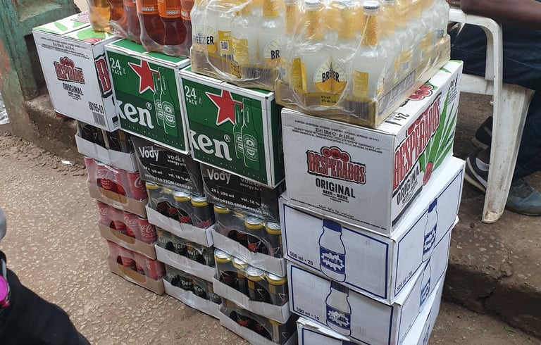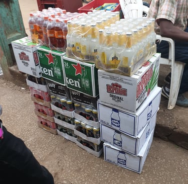 Dépôt de boissons à Conakry, spécialisé dans la vente de boissons alcoolisées et non alcoolisées, offrant qualité et service rapide à nos clients.